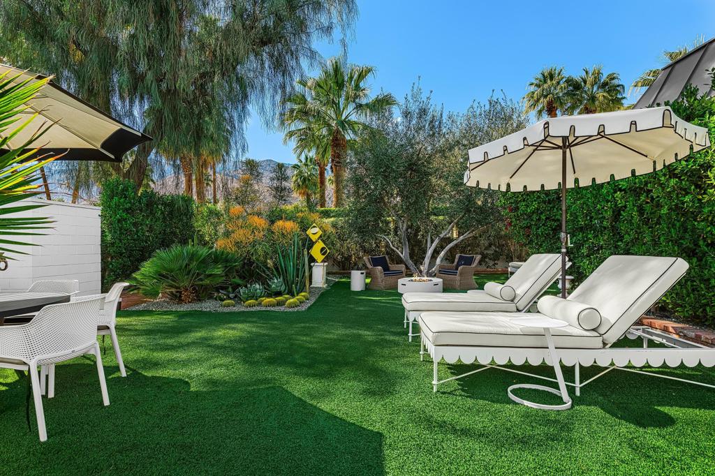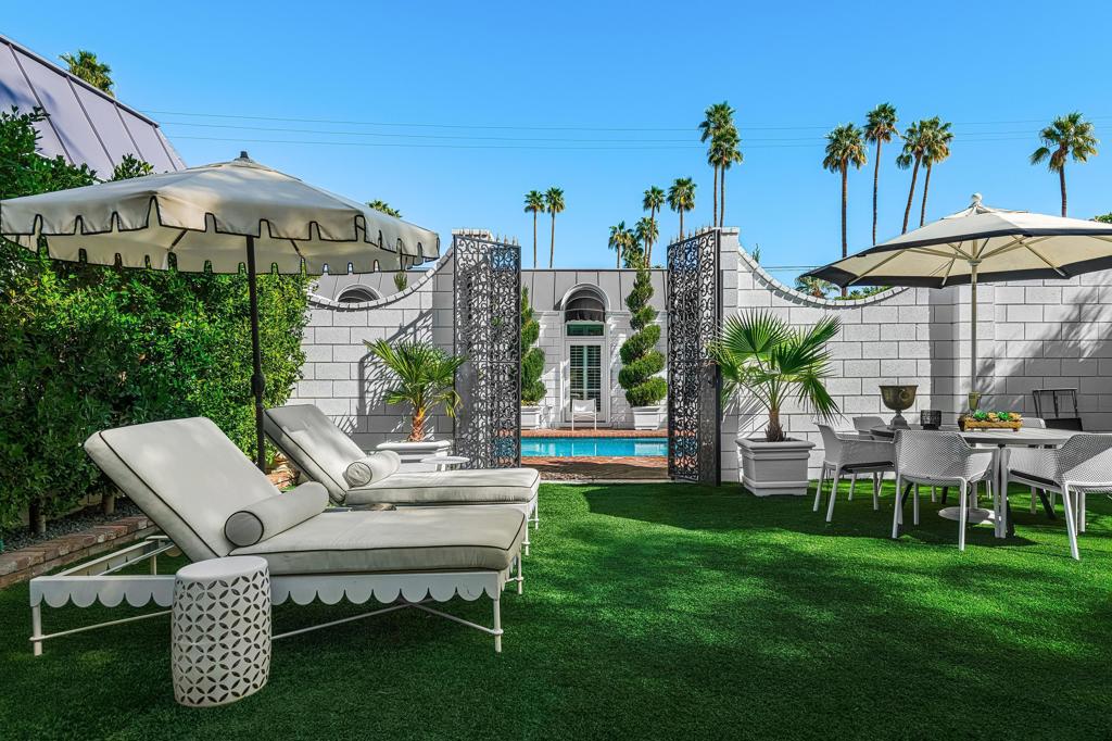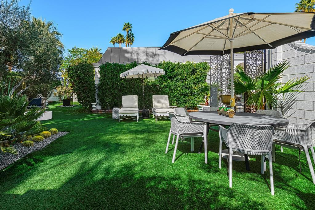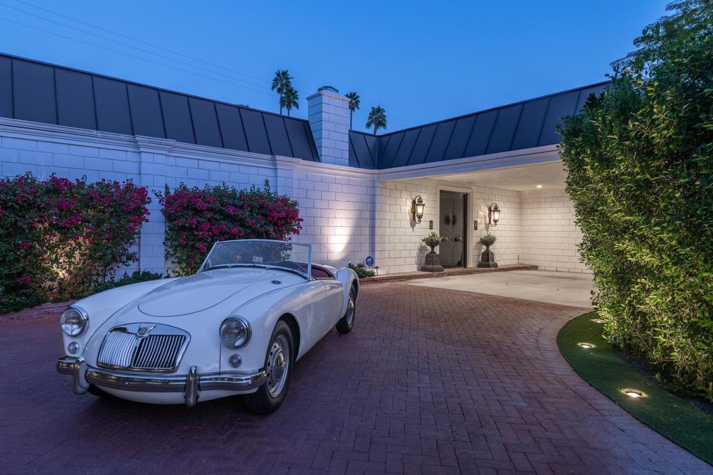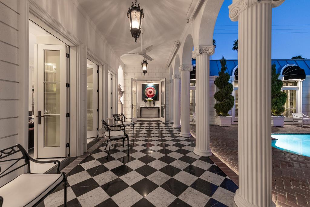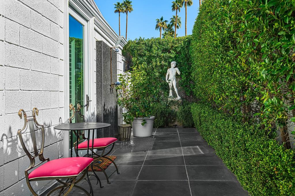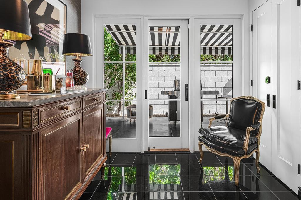 Introducing 'La Petite Maison', a glamorous 3 bed / 3 bath Hollywood Regency style home inspired by John Elgin Woolf.Exuding elegance and sophistication, legend has it that Liberace commissioned this one-of-a-kind residence for his mother Frances.Lovingly restored & upgraded with a warm and inviting feel throughout. Features include black & white marble floors, high ceilings, French doors, and smart home technology. The stunning living room includes a gas fireplace, original crystal chandelier, heated floors, surround sound speakers, custom millwork and access to the pool courtyard. The spacious dining room is perfect for entertaining. The dramatic and renovated black & white service kitchen includes new Kitchen Aid appliances including two dishwashers, an induction cooktop, and integrated microwave/convection wall oven.The spacious primary bedroom boasts a soaker tub, steam shower, heated bathroom floors, vintage lighting from Paris & outdoor shower with views of the San Jacinto mountains. Two guest rooms each have their own en-suite bath.Outside, a private salt-water pool and estate-like lush garden offer views of the San Jacinto Mountains. Elegant garden gates provide access to a desert oasis: sunny and quiet, with solid hedging, mature trees, a fire pit and water fountain. The rear patio features a charming al fresco setting for outdoor dining.This especially rare piece of Palm Springs history must be seen in person to be truly appreciated.