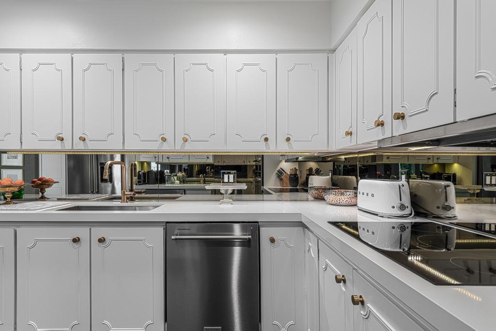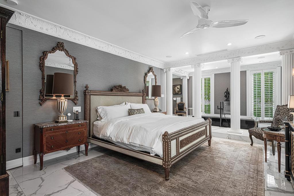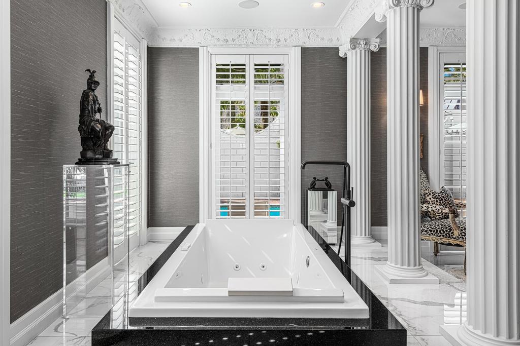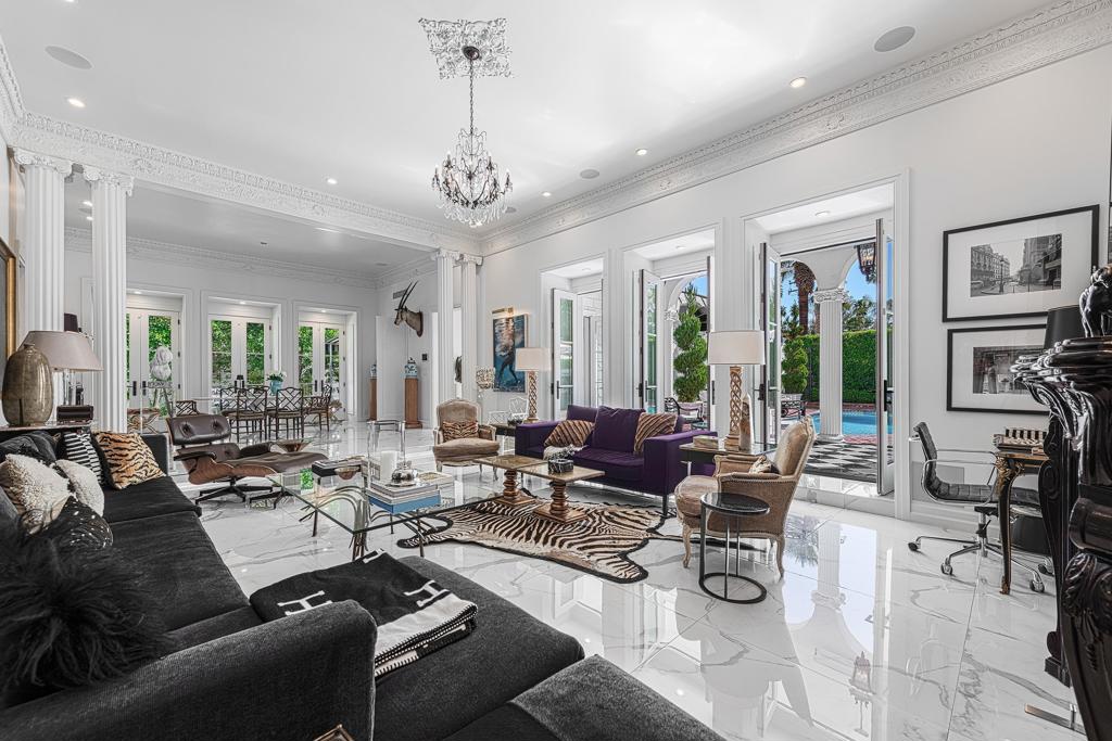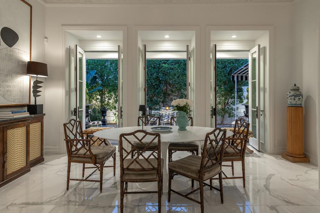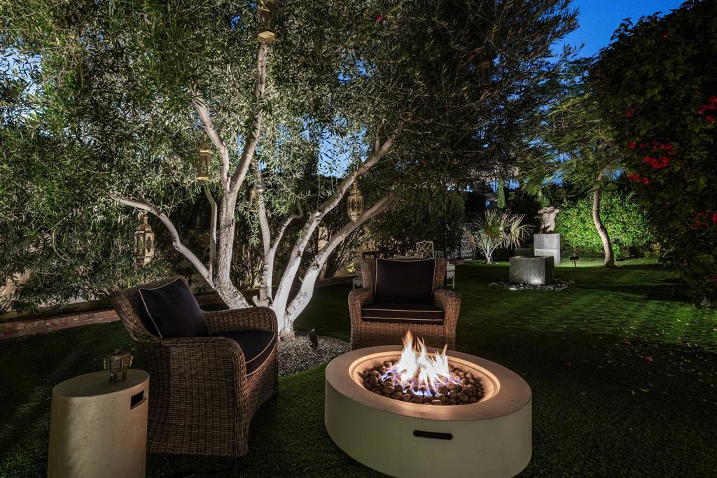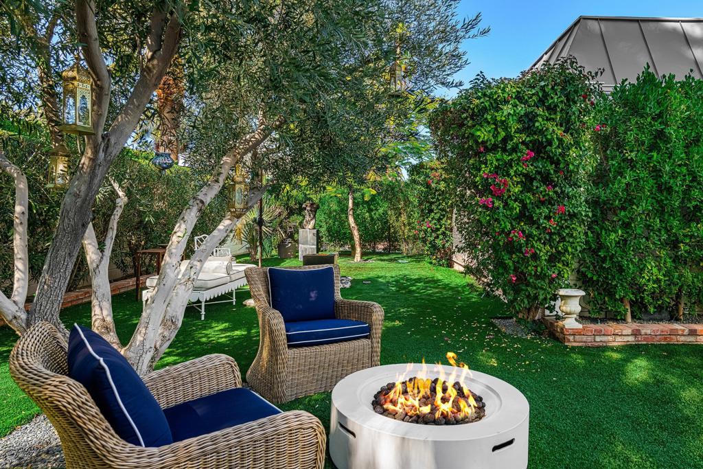 Introducing 'La Petite Maison', a glamorous 3 bed / 3 bath Hollywood Regency style home inspired by John Elgin Woolf.Exuding elegance and sophistication, legend has it that Liberace commissioned this one-of-a-kind residence for his mother Frances.Lovingly restored & upgraded with a warm and inviting feel throughout. Features include black & white marble floors, high ceilings, French doors, and smart home technology. The stunning living room includes a gas fireplace, original crystal chandelier, heated floors, surround sound speakers, custom millwork and access to the pool courtyard. The spacious dining room is perfect for entertaining. The dramatic and renovated black & white service kitchen includes new Kitchen Aid appliances including two dishwashers, an induction cooktop, and integrated microwave/convection wall oven.The spacious primary bedroom boasts a soaker tub, steam shower, heated bathroom floors, vintage lighting from Paris & outdoor shower with views of the San Jacinto mountains. Two guest rooms each have their own en-suite bath.Outside, a private salt-water pool and estate-like lush garden offer views of the San Jacinto Mountains. Elegant garden gates provide access to a desert oasis: sunny and quiet, with solid hedging, mature trees, a fire pit and water fountain. The rear patio features a charming al fresco setting for outdoor dining.This especially rare piece of Palm Springs history must be seen in person to be truly appreciated.
