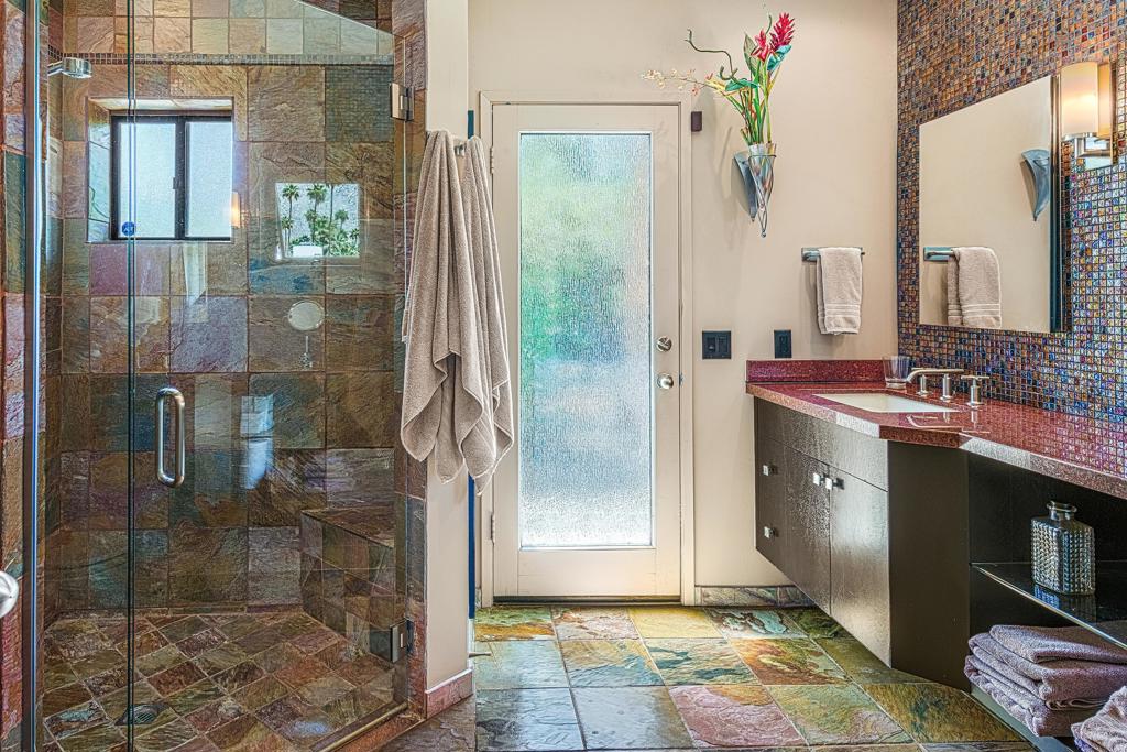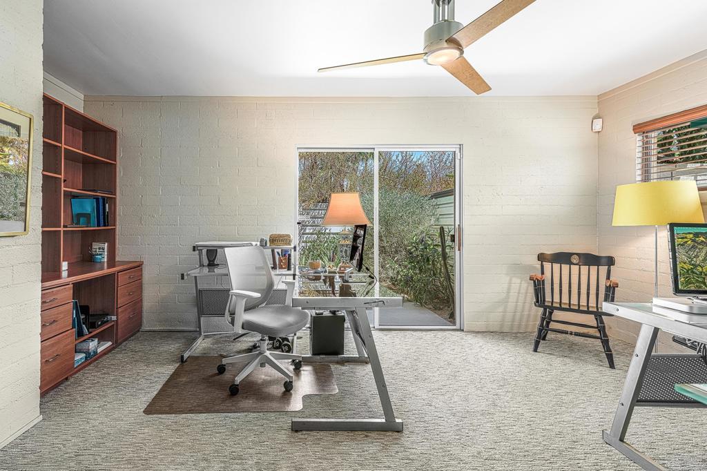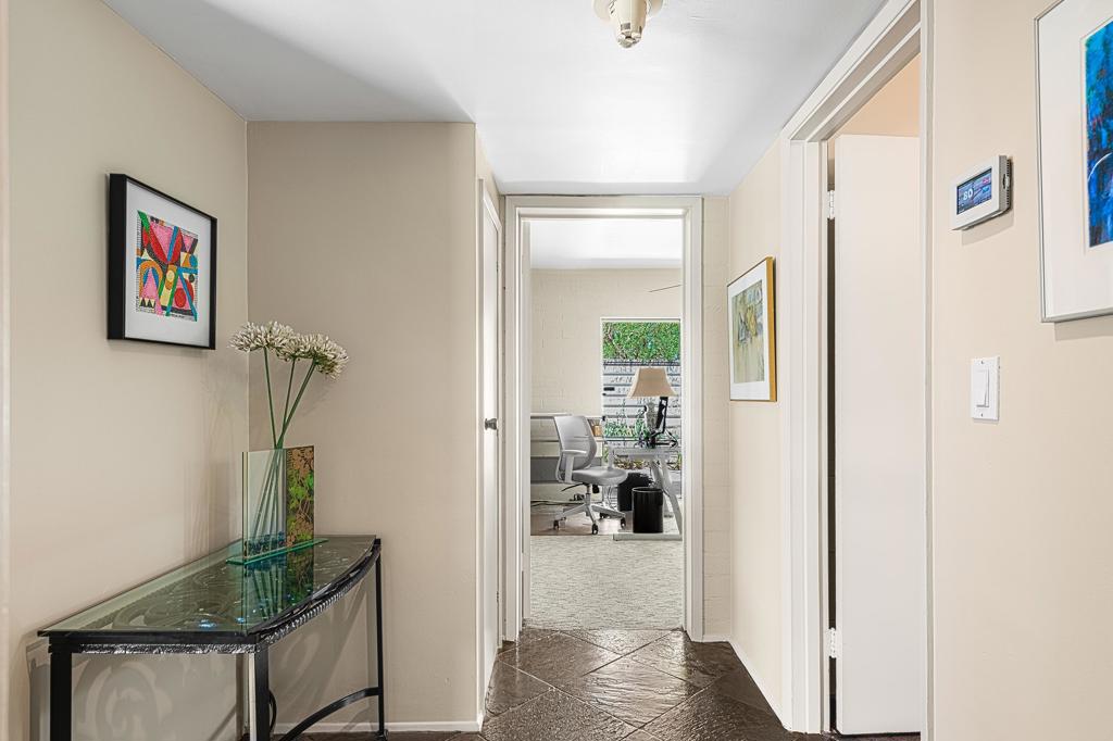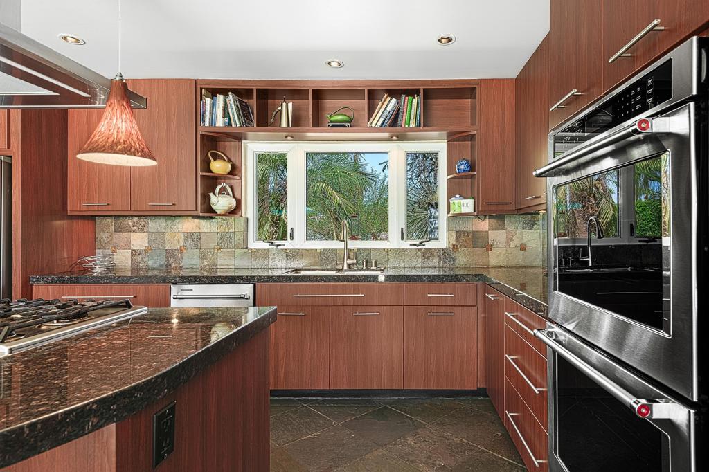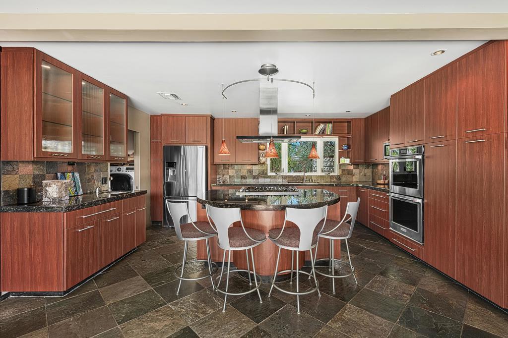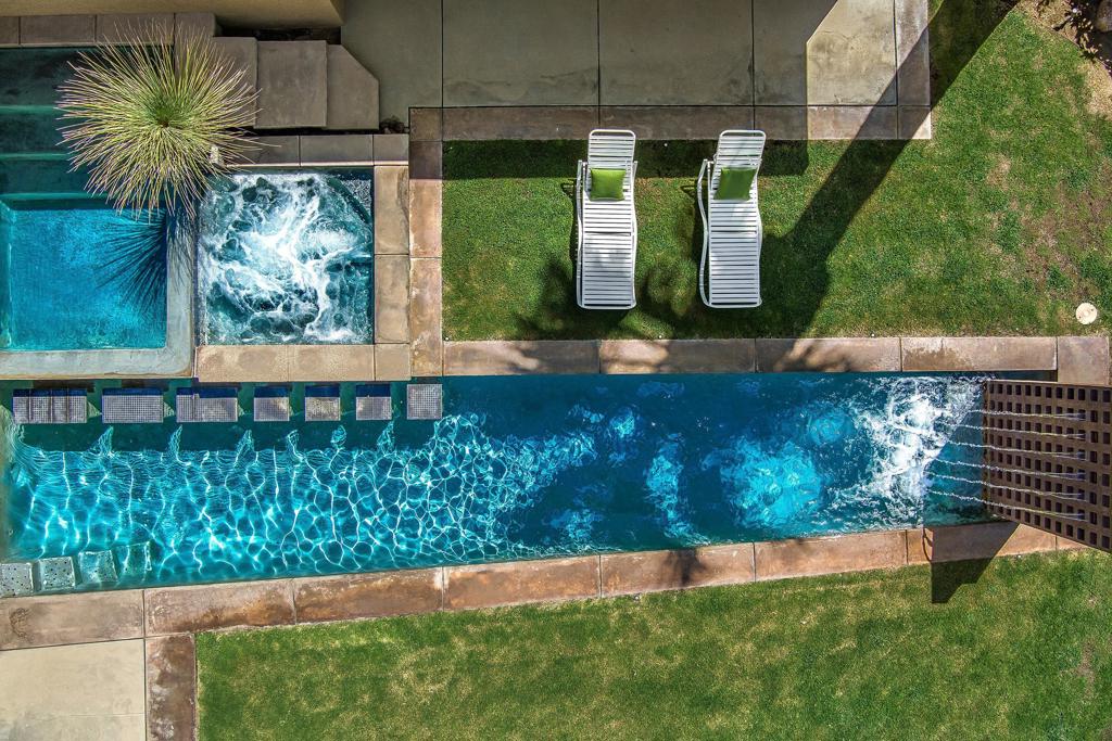 South facing backyard with captivating mountain views! Welcome to a stunning Mid-Century oasis in the heart of Deepwell Estates, positioned on one of the neighborhood's most coveted streets. This beautifully preserved home, lovingly maintained by the same family for over two decades, combines classic elegance with modern sophistication, reminiscent of the famed Trousdale designs. As you enter, you'll be captivated by a striking 40-foot glass wall, perfectly framing the exquisite view of a uniquely designed pool and mountain vistas. The open-concept floor plan seamlessly connects the main living area, dining room, family room and kitchen -- creating an ideal setting for entertaining family and friends. The kitchen was enlarged and reimagined to become a visually sophisticated and highly functional space with plenty of cabinets, center island, gas cooktop, double ovens and built-in bar area. The spacious primary suite offers sliding glass doors that open directly to the pool and frame the breathtaking mountain views. The primary bathroom is a luxurious retreat featuring a double vanity, zero-entry shower, and an exterior door for convenient access to the outdoor shower and pool. Two additional well-sized bedrooms include one en-suite, perfect for guests and family. The expansive backyard has room to roam with several seating and entertaining areas all complimented by a row of citrus trees, firepit and dramatic mountain views. Recent enhancements, include a resurfaced roof in 2024, variable-speed pool pump in 2022, owned solar panels with inverter in 2021, updated electrical, plumbing, dual pane windows, Fleetwood sliders and heat pumps highlighting the home's enhanced functionality ensuring cost-effective living. This exceptional residence, located within one of Palm Springs' most beloved neighborhoods, perfectly captures the essence of desert living. This home radiates the Palm Springs lifestyle you've been waiting for!