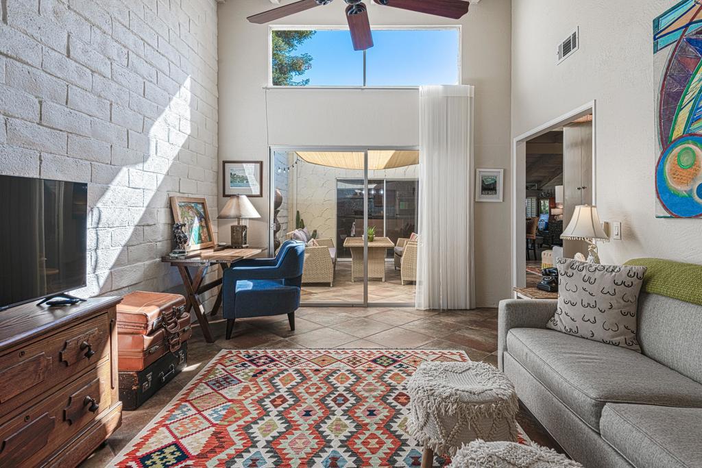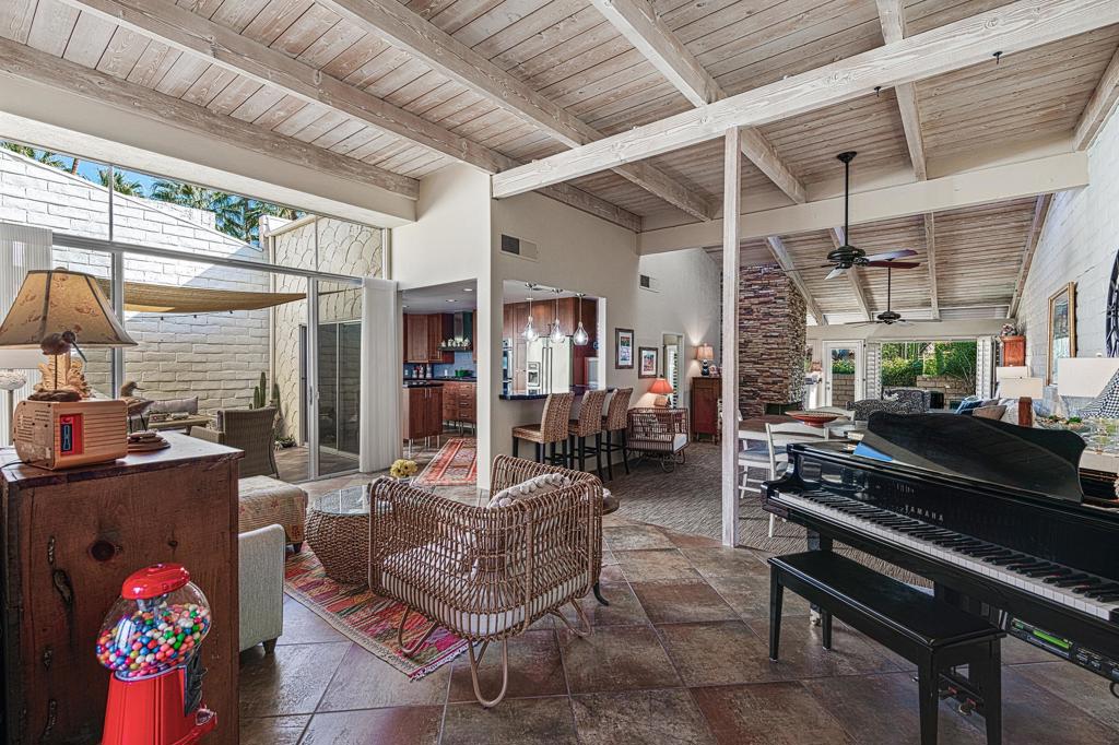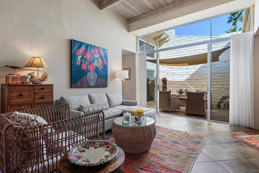 Exceptional Value in South Palm Springs!This is your chance to own a beautifully unique home in one of the desert's most desirable communities--now at a newly reduced price.Bathed in warm desert light and surrounded by breathtaking mountain views, this spacious 3-bedroom, 2-bathroom condo offers 2,054 sq ft of inviting living space that blends comfort, charm, and opportunity. Whether you're captivated by its original Spanish-style character or envision your own modern touches, this home is a rare find at this price point.Top 3 Reasons to Fall in Love:Architectural Warmth & CharacterRustic 12-inch adobe walls, broad beamed ceilings, and whitewashed shiplap combine to create a timeless, Spanish-contemporary vibe throughout the home.Private Outdoor EscapeStep outside to a lush, wraparound patio featuring citrus trees, flowering desert plants, and mature landscaping--an oasis of calm with mountain views and the songs of native birds.Vibrant, Updated CommunitySet within a secure, guard-gated neighborhood that's recently undergone a multi-million-dollar infrastructure update--newly paved streets, enhanced lighting, and refreshed landscaping included.Inside, double glass doors open to soaring 14-foot ceilings and a sunlit open layout that seamlessly connects living, dining, and kitchen spaces--perfect for everyday living or entertaining. Enjoy easy indoor-outdoor flow with both an interior courtyard and a private walled patio, ideal for morning coffee or sunset dinners.Additional Perks: Leased water softener system Generous storage throughout Access to 3 community pools & spas, tennis courts, and BBQ areasAll just minutes from local favorites like L'Horizon, Koffi, and Smoketree Plaza.Whether you're searching for a full-time residence, seasonal escape, or investment property--this home offers unmatched value and endless potential. Don't miss your chance to own a slice of the Palm Springs lifestyle at a new, more affordable price.