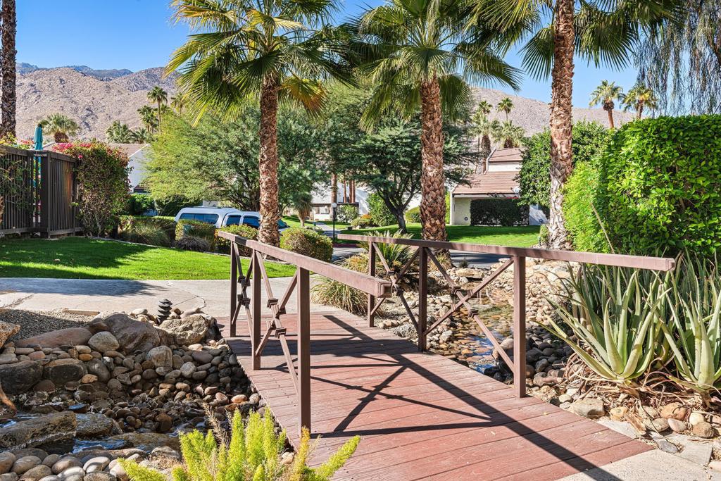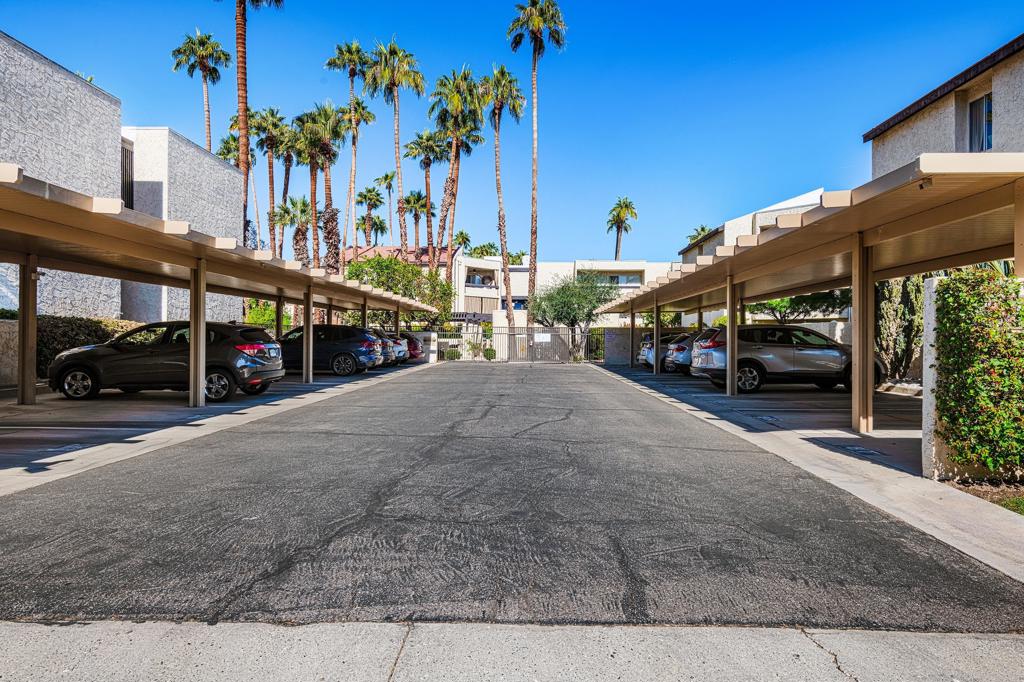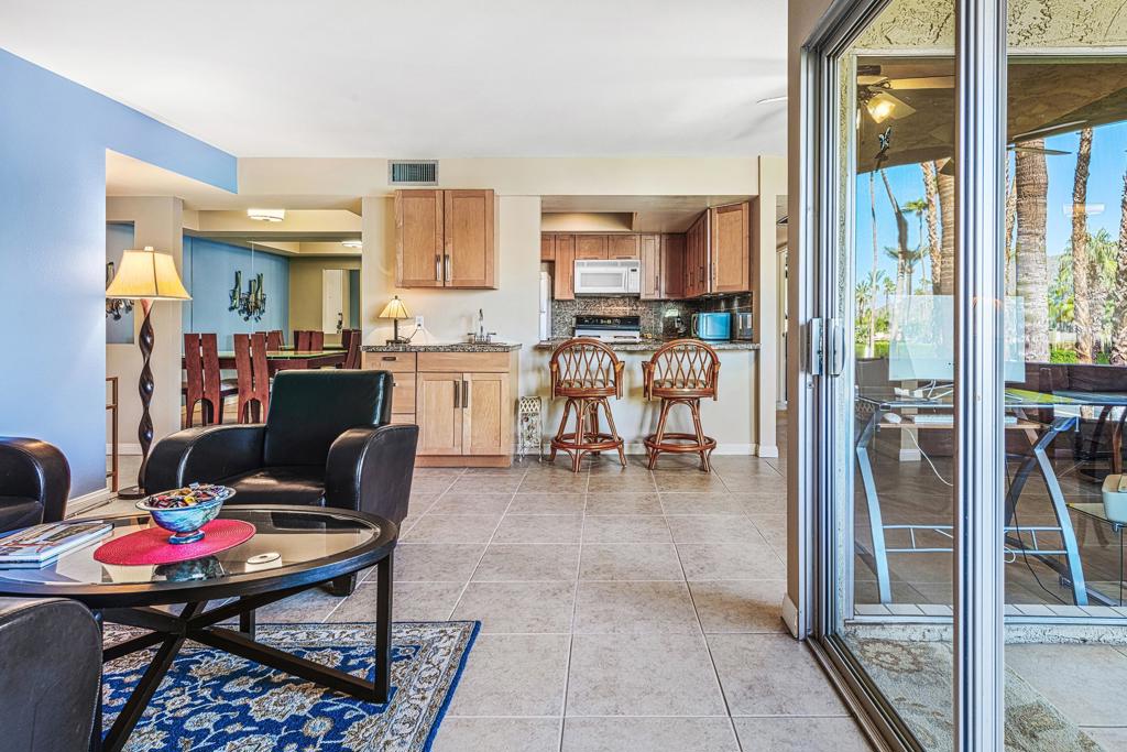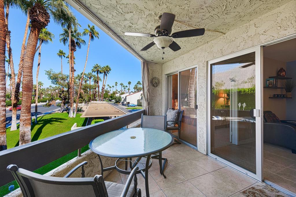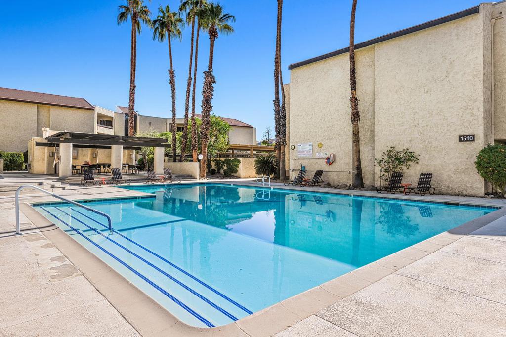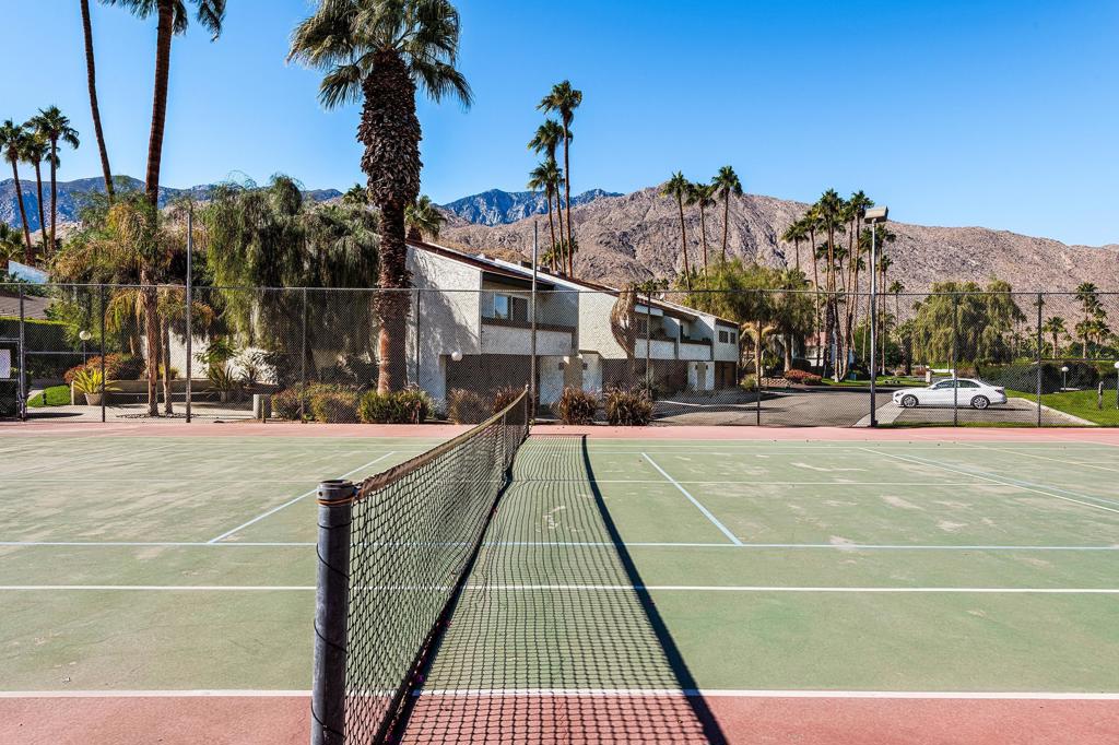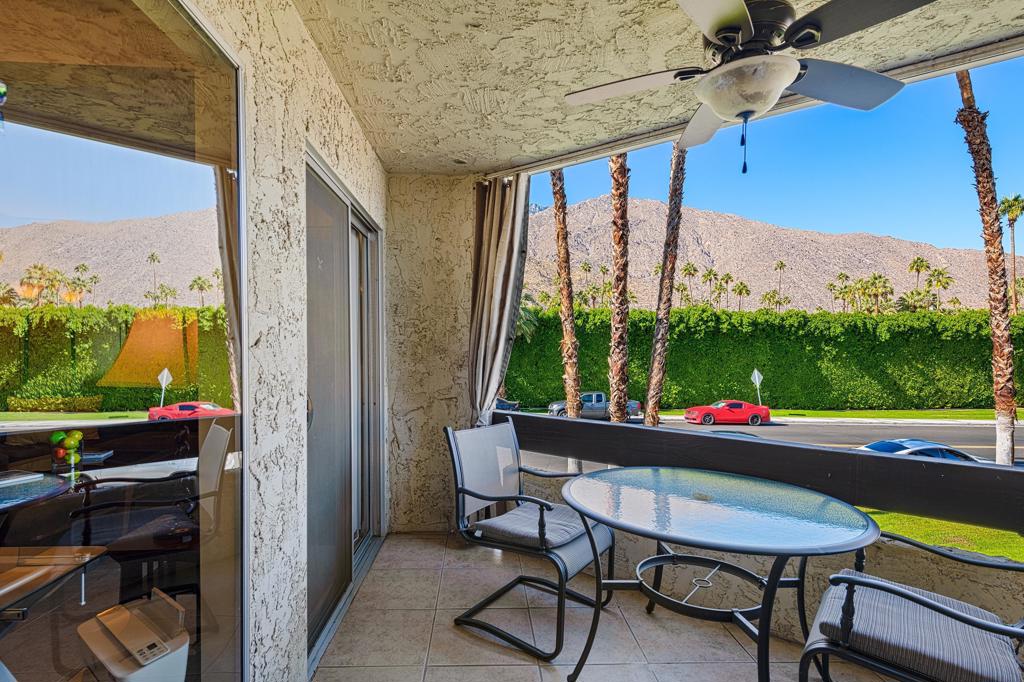 Discover the exceptional corner condo at Biltmore Phase III, featuring the largest floor plan in the highly sought-after South Palm Springs area. This updated, single-level condo on the second floor offers easy elevator access and comes fully furnished, ready for immediate enjoyment. Inside, you'll find tile flooring throughout the main living spaces, with new carpeting and ceiling fans in the bedrooms for added comfort. The open kitchen has ample cabinet space, gas stove and bar seating that seamlessly connects to the living area, which includes a wet bar for entertaining. The condo boasts two spacious bedrooms, each with direct access to en-suite bathrooms, positioned on opposite sides for maximum privacy. Enjoy stunning western mountain views from the large balcony, accessible through three sets of glass sliders. Community amenities include carport parking, a laundry room, an oversized pool, spa, BBQ area, and a cabana with misters for outdoor dining. Conveniently located near downtown and popular destinations like Del Rey at the Villa Royale, Koffi, Ace Hotel and El Mirasol Cantina this property is ideal for full-time living, a second home, or as an investment. With a private land lease extending to 2072 and a new AC unit installed in 2018, this condo ensures comfort and efficiency. Experience the best of Palm Springs living with this remarkable offering!
