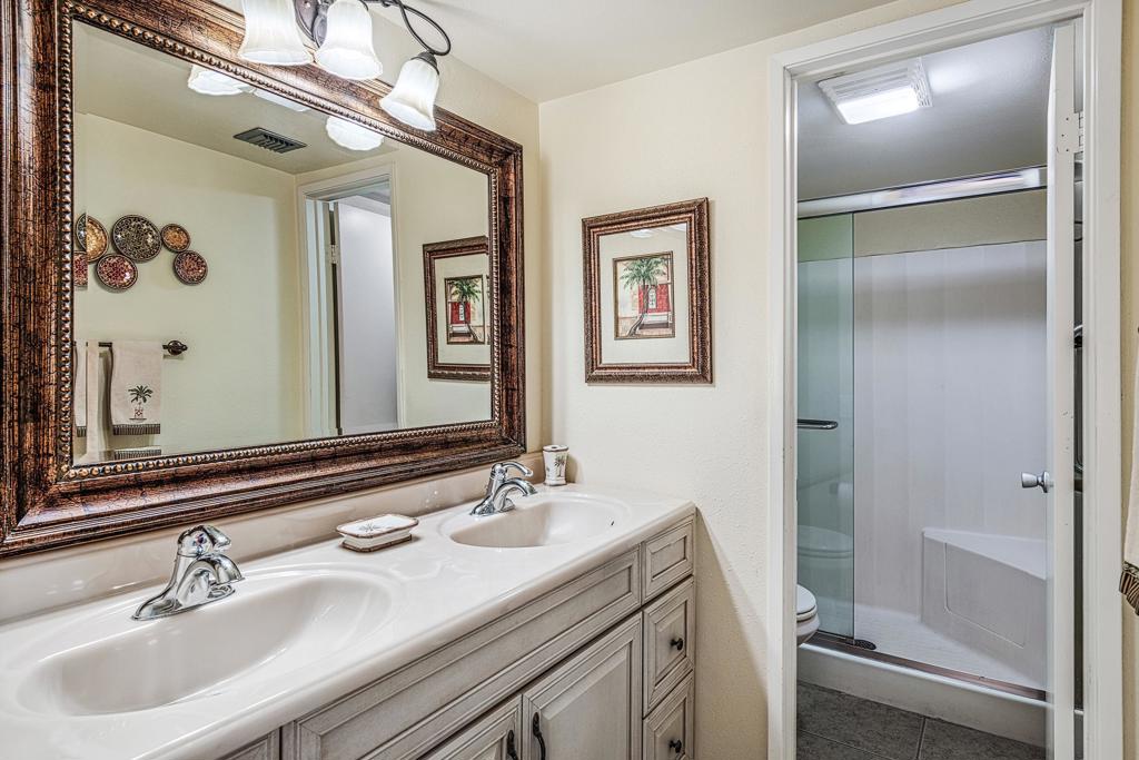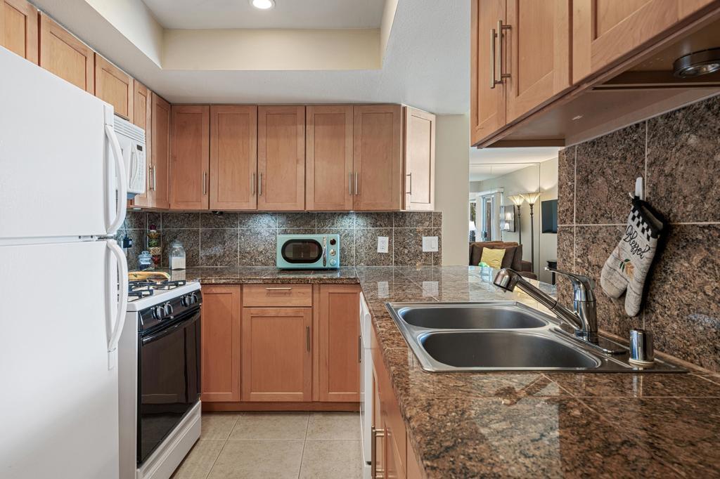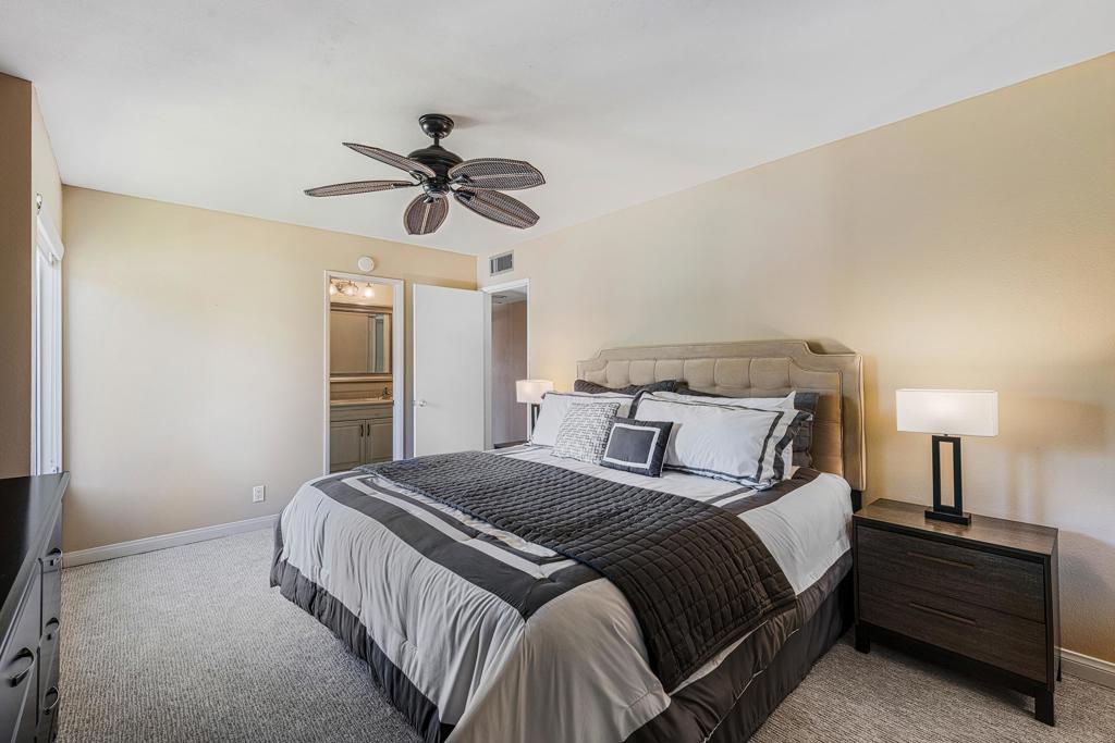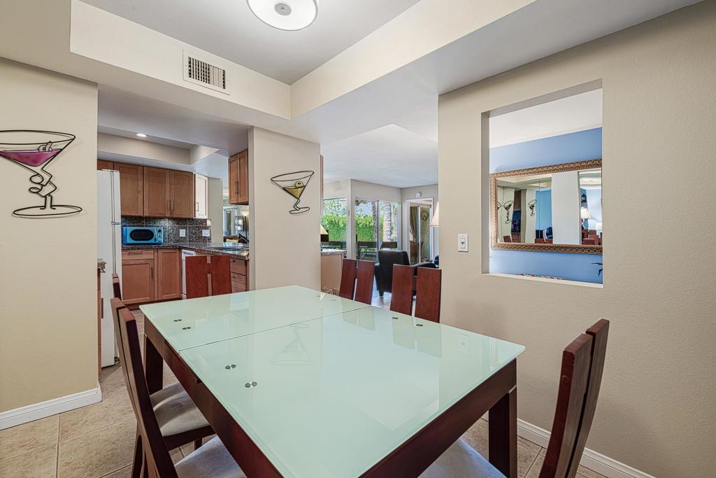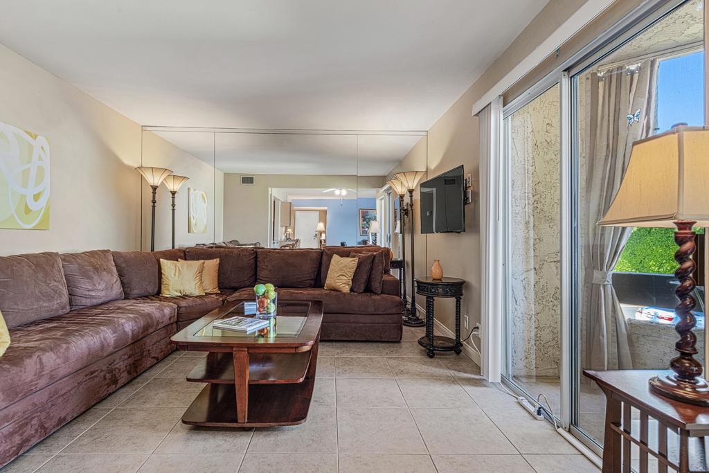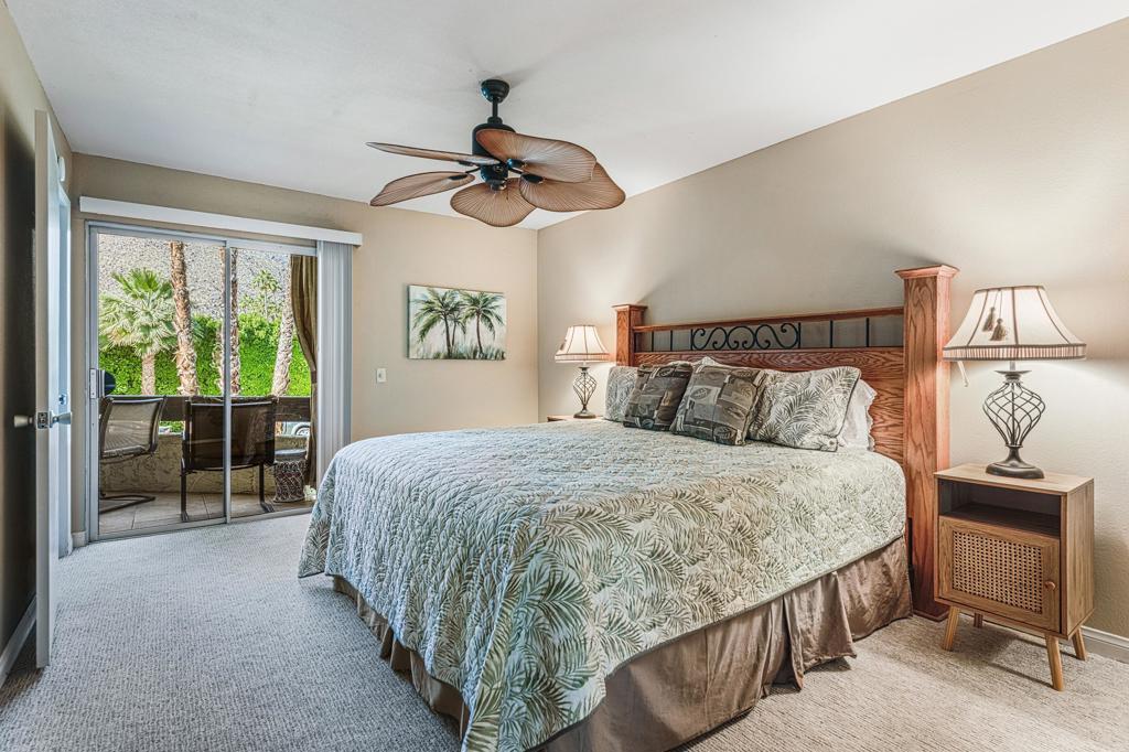 Discover the exceptional corner condo at Biltmore Phase III, featuring the largest floor plan in the highly sought-after South Palm Springs area. This updated, single-level condo on the second floor offers easy elevator access and comes fully furnished, ready for immediate enjoyment. Inside, you'll find tile flooring throughout the main living spaces, with new carpeting and ceiling fans in the bedrooms for added comfort. The open kitchen has ample cabinet space, gas stove and bar seating that seamlessly connects to the living area, which includes a wet bar for entertaining. The condo boasts two spacious bedrooms, each with direct access to en-suite bathrooms, positioned on opposite sides for maximum privacy. Enjoy stunning western mountain views from the large balcony, accessible through three sets of glass sliders. Community amenities include carport parking, a laundry room, an oversized pool, spa, BBQ area, and a cabana with misters for outdoor dining. Conveniently located near downtown and popular destinations like Del Rey at the Villa Royale, Koffi, Ace Hotel and El Mirasol Cantina this property is ideal for full-time living, a second home, or as an investment. With a private land lease extending to 2072 and a new AC unit installed in 2018, this condo ensures comfort and efficiency. Experience the best of Palm Springs living with this remarkable offering!
