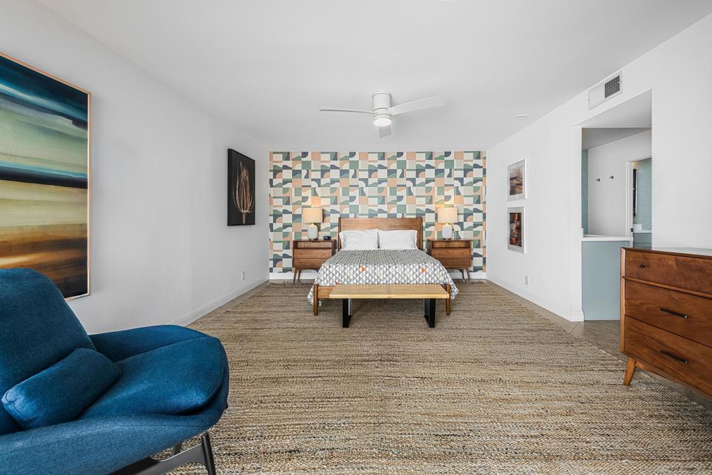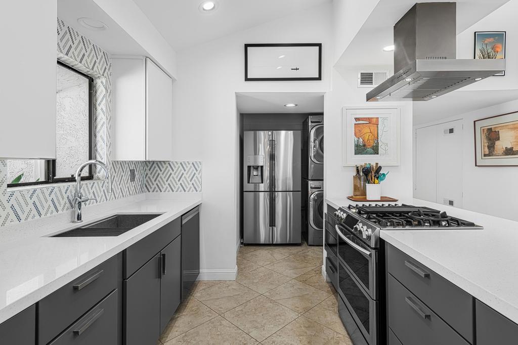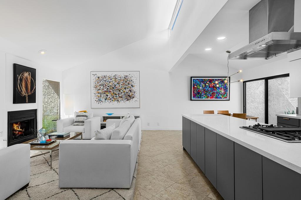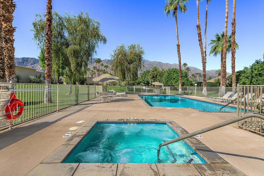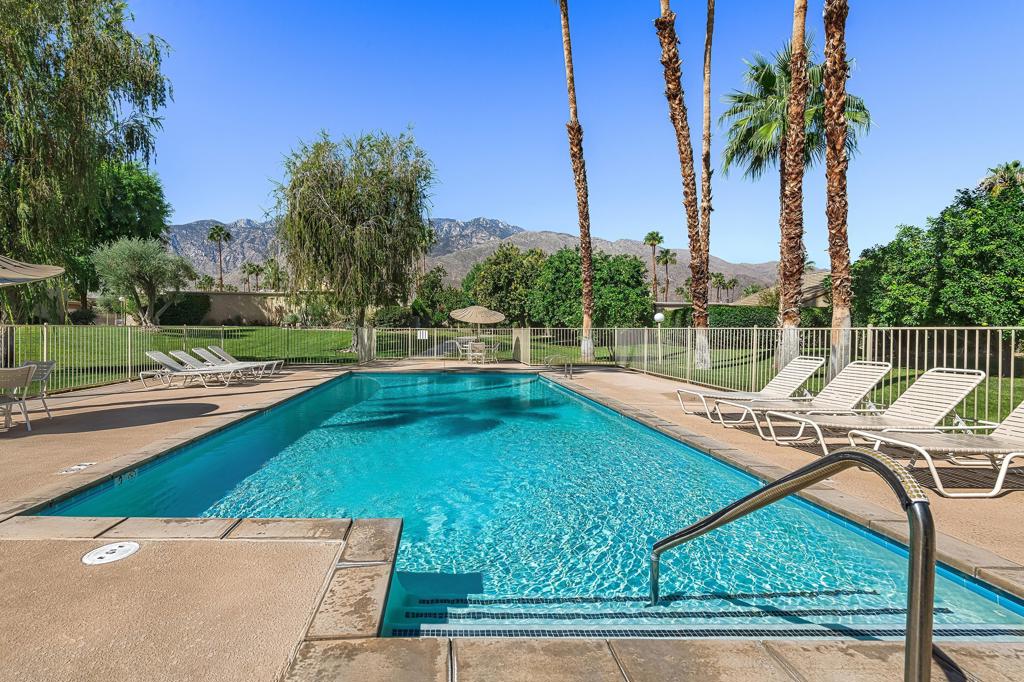This Hugh Kaptur designed condo is a true 3 bedroom 2 bath with an attached 2 car garage. Designed around a large interior patio this unique concept allows for in-home outside entertaining with complete privacy! Situated in one of the most desirable areas of the complex, this condo exudes a welcoming neighborhood vibe! Inside you will find an open floor plan with high vaulted ceilings and walls of glass allowing the soft flow of light throughout your main living areas. Updated kitchen with a large island, high end appliances and tons of cabinet space. A neutral style tile is continuous throughout the entire home that engenders an expansive flow from room to room. The spacious Primary Suite with room for a cozy sitting area with direct access to your outdoor patio. Primary bathroom has a double vanity and walk-in shower. Two guest bedrooms are on the opposite side of the home that share a central bathroom. There is a 2nd large patio that is perfect for morning coffee or basking in the desert sun. Saddlerock Gardens is a boutique complex of 43 patio homes with 2 pool/spas and 2 tennis courts. Low HOA that covers building, grounds and cable tv. Worryfree style living that is walking distance to restaurants, shopping and coffee houses.