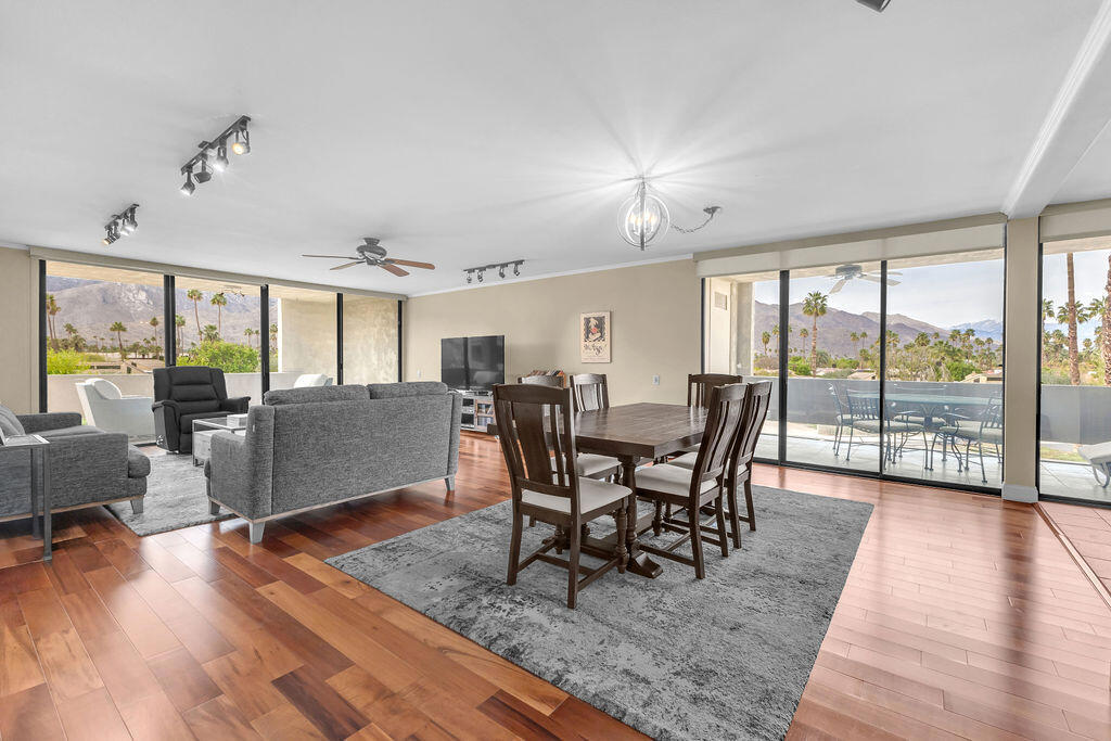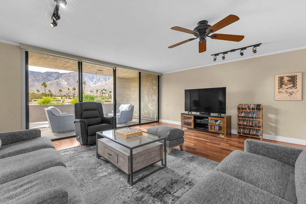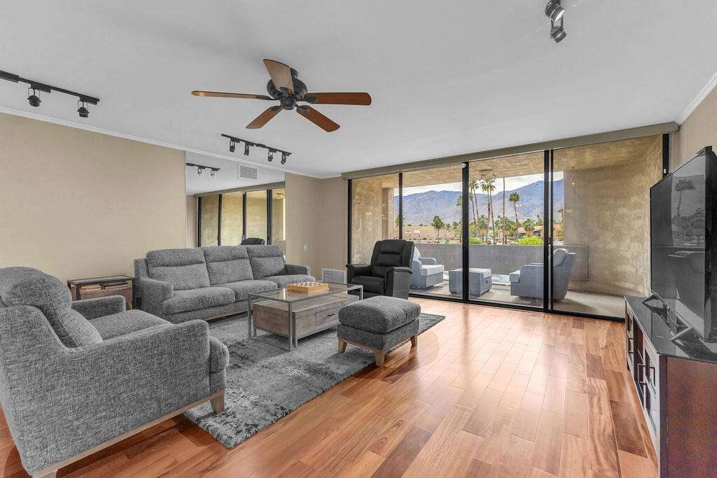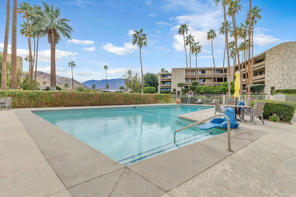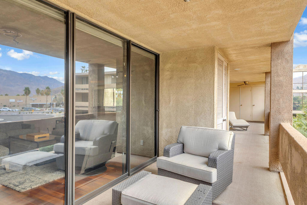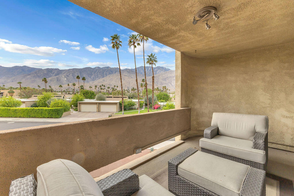Views, Views, Views! This has to be one of the best positioned condos in the Diplomat. Located on the 2nd floor you rise above for perfect mountain views. Updated kitchen with neutral cabinets, stainless steel appliances, granite and recess lighting. The open living-dining area has hardwood floors, plenty of wall space for that art enthusiast and floor to ceiling sliders. Two large balconies that can be accessed from every room. Primary bedroom suite is very spacious and can accommodate king sized furnishings. The primary bathroom has a large walk-in shower, double vanity with tons of storage and a built in linen closet. Guest bedroom has a queen size Murphy bed and storage/office area for those who work from home. Secure building with elevators and underground gated parking. Conveniently located to restaurants, shopping, drugstores and post office.