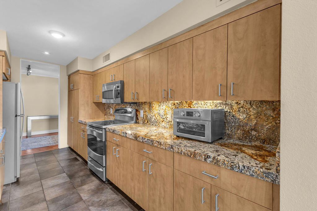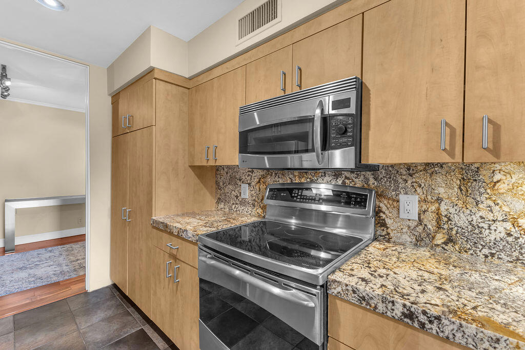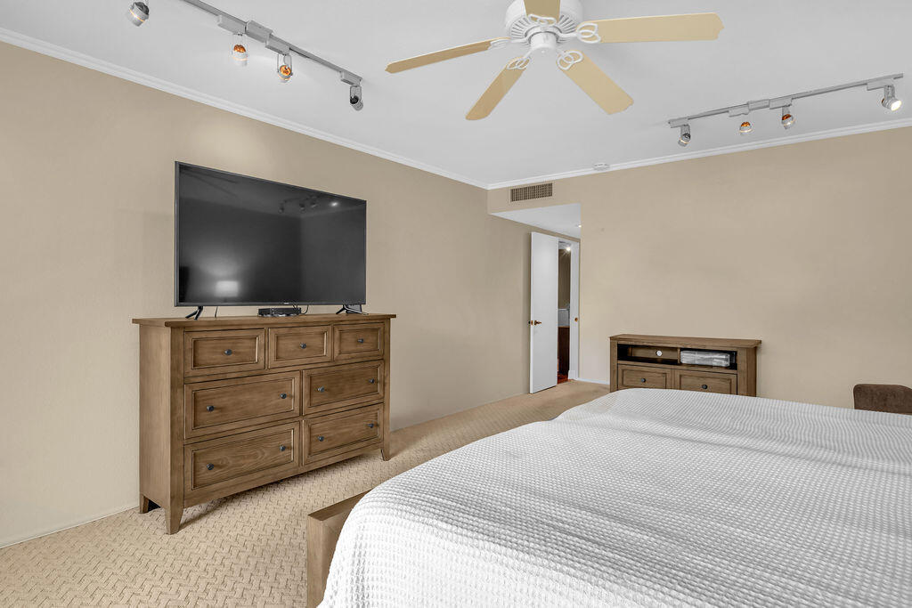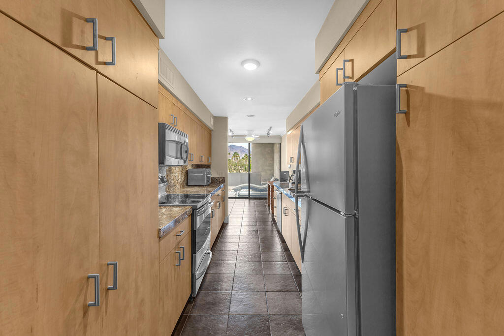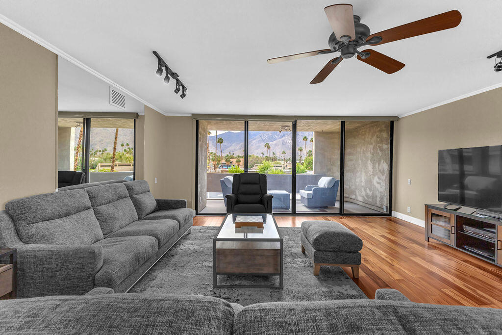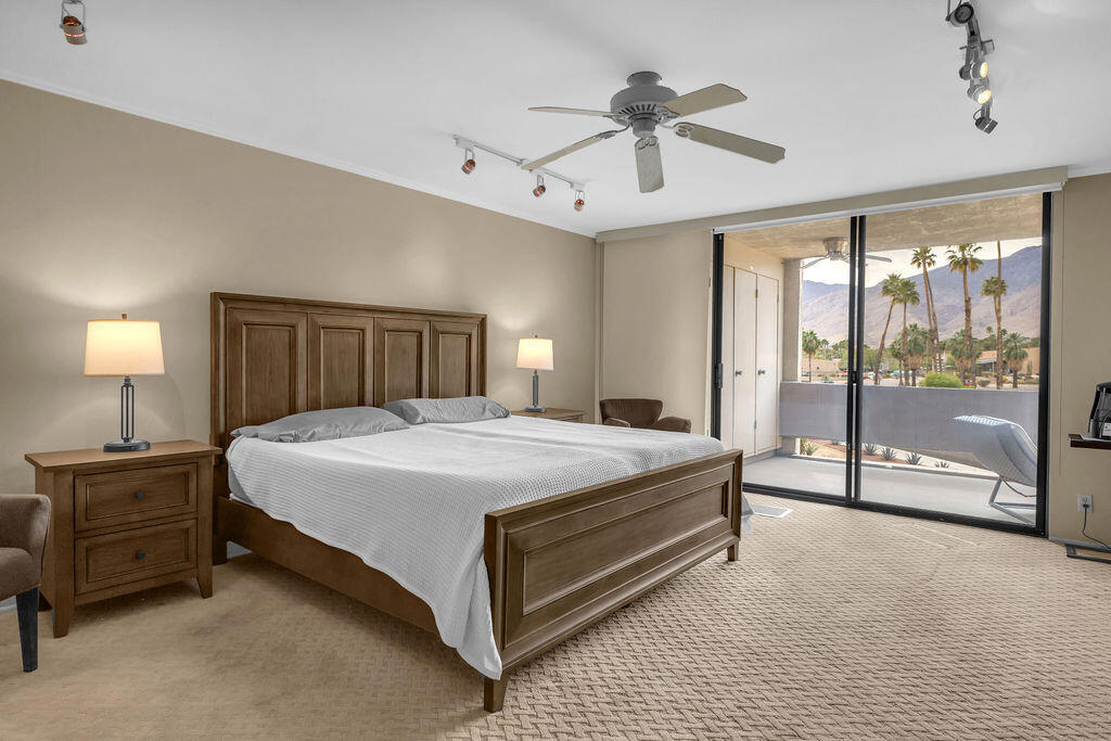 Views, Views, Views! This has to be one of the best positioned condos in the Diplomat. Located on the 2nd floor you rise above for perfect mountain views. Updated kitchen with neutral cabinets, stainless steel appliances, granite and recess lighting. The open living-dining area has hardwood floors, plenty of wall space for that art enthusiast and floor to ceiling sliders. Two large balconies that can be accessed from every room. Primary bedroom suite is very spacious and can accommodate king sized furnishings. The primary bathroom has a large walk-in shower, double vanity with tons of storage and a built in linen closet. Guest bedroom has a queen size Murphy bed and storage/office area for those who work from home. Secure building with elevators and underground gated parking. Conveniently located to restaurants, shopping, drugstores and post office.