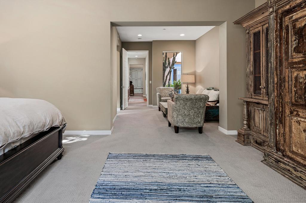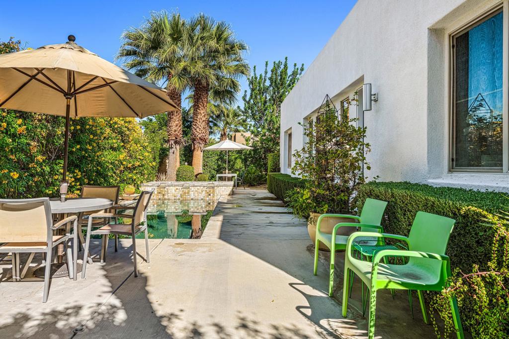 This truly exceptional home sits on one of the most private and largest lots in Luminaire creating a resort-like atmosphere that must be experienced to be appreciated. Set in Palm Springs' iconic Araby neighborhood, the area is rich with Hollywood history, adding to its charm and appeal. The serene sitting offers a zen-like atmosphere and mountain views. Luminaire is a sleek modern boutique subdivision close to shopping, restaurants and hiking! Step inside to discover an open floor plan with soaring ceilings and a cozy gas fireplace connecting both the front courtyard patio and back entertaining area with a firepit to keep you warm on cool desert nights. This space is perfect for large family gatherings, dinner parties or just chilling with coffee while reading a book. The gourmet kitchen has a center island, Energy Star appliances and wine cooler ideal for any culinary enthusiast. The vast primary suite has a separate sitting area, spa-like primary bathroom with double vanities, a walk-in shower, soaking tub and custom walk-in closet. The two nicely sized guest bedrooms are on the opposite side of the home creating privacy for all your guests with a centrally located bathroom. Own solar panels ensure low electric bills. Recent upgrades include HVAC system, whole house surge protector, on demand hot water heater, pool equipment and state of the art alarm system with outside laser detectors. This one-of-a-kind property is poised to provide years of enjoyment and exceptional living. Low HOA's and you own the land!