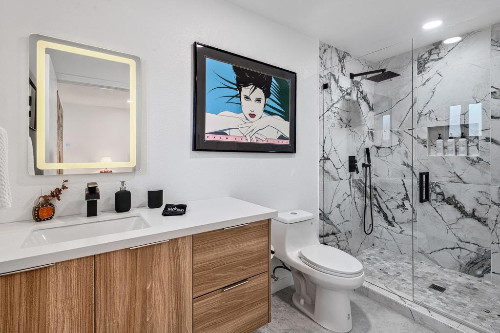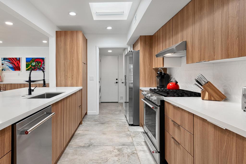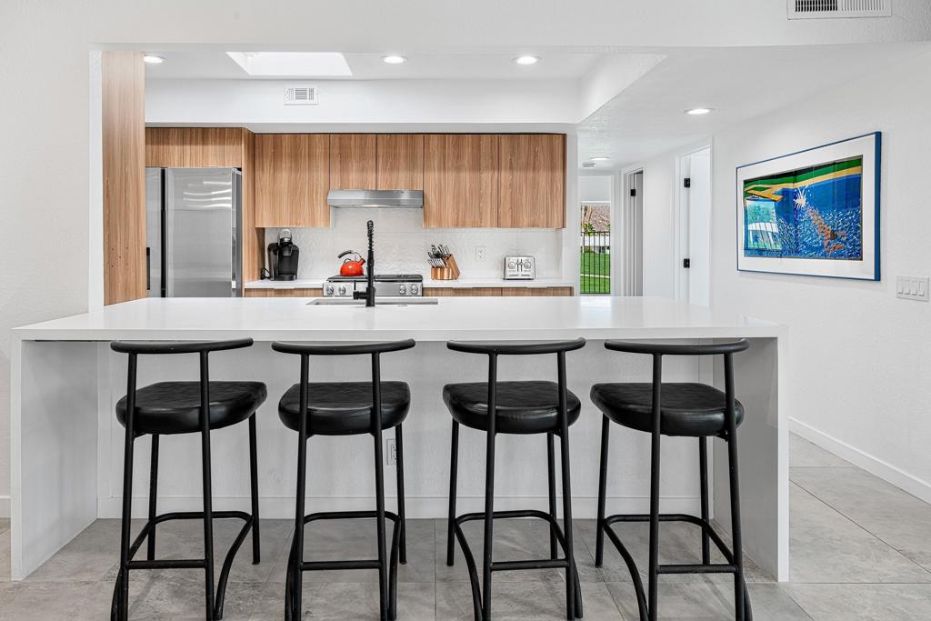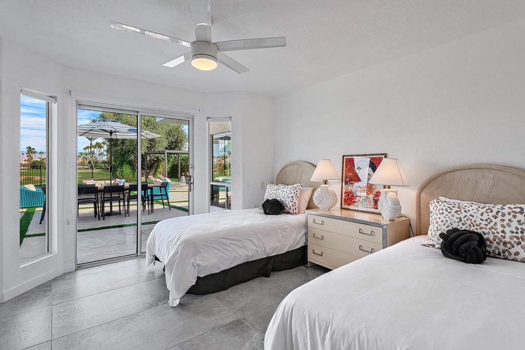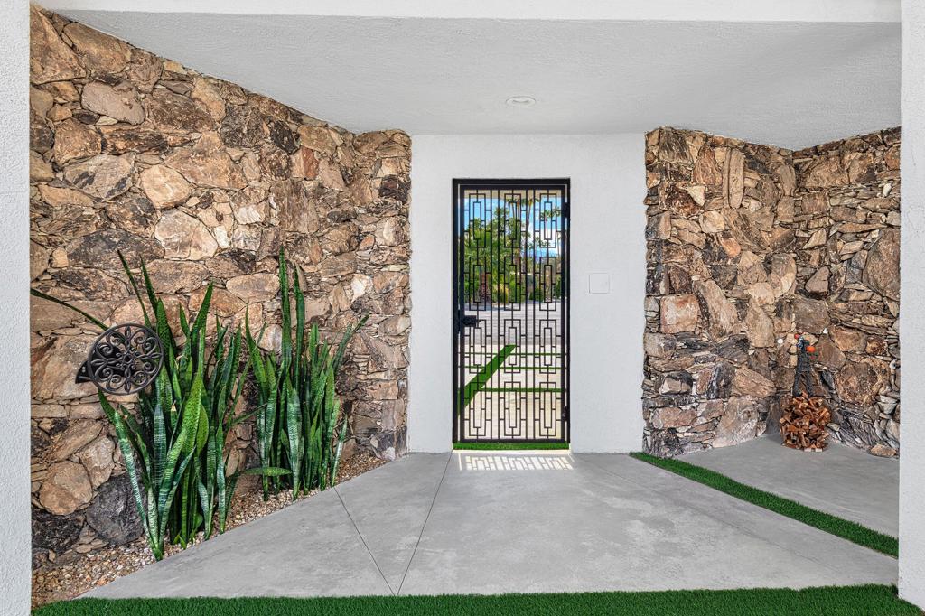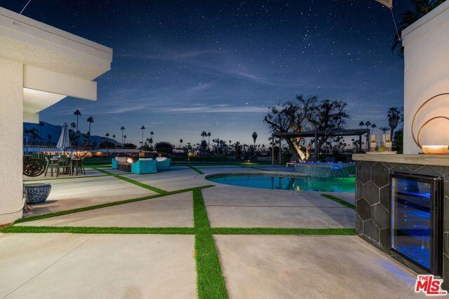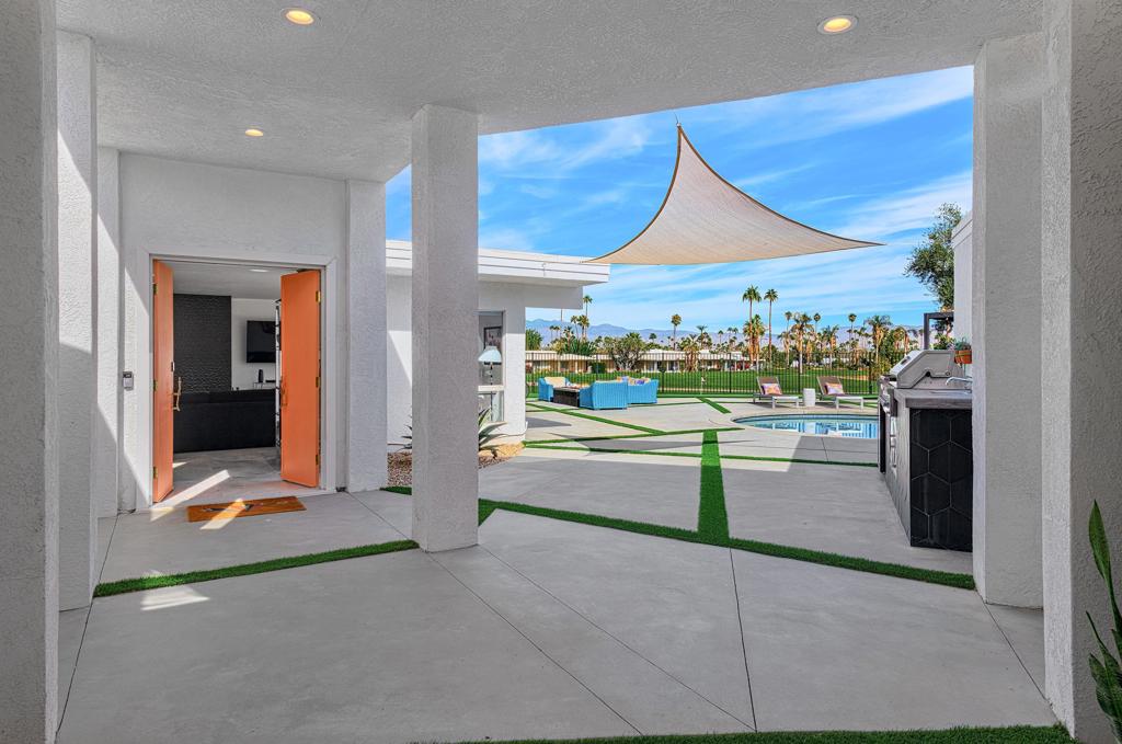 This captivating home sits in a prime golf course location in Indian Canyons subdivision. Designed by the renowned architect Hugh Kaptur (AIA), is a masterful display of Mid-century architecture, artfully integrating classic design with modern comforts. The outdoor space offers stunning mountain vistas and features a top-of-the-line BBQ area, making it perfect for hosting large gatherings or enjoying intimate family time. Relaxation is guaranteed with a large pool and spa, and a newly built pergola provides a cool, shaded escape. Inside, the spacious open living area boasts a stylish fireplace, seamless porcelain tile flooring, and expansive glass walls. The kitchen is a chef's dream, equipped with high-end stainless-steel appliances, generous cabinet space, and a large island with bar seating. The home offers five beautifully appointed bedrooms, ensuring plenty of space and privacy. The luxurious primary suite is a private retreat, complete with a lounge area, fireplace, and breathtaking views of the golf course, pool, and the majestic San Jacinto mountains. Four bedrooms are located in the main house, with a detached casita providing flexibility as an additional bedroom or poolside lounge. Ideally located in South Palm Springs, this residence is an invitation to live in leisure and style.