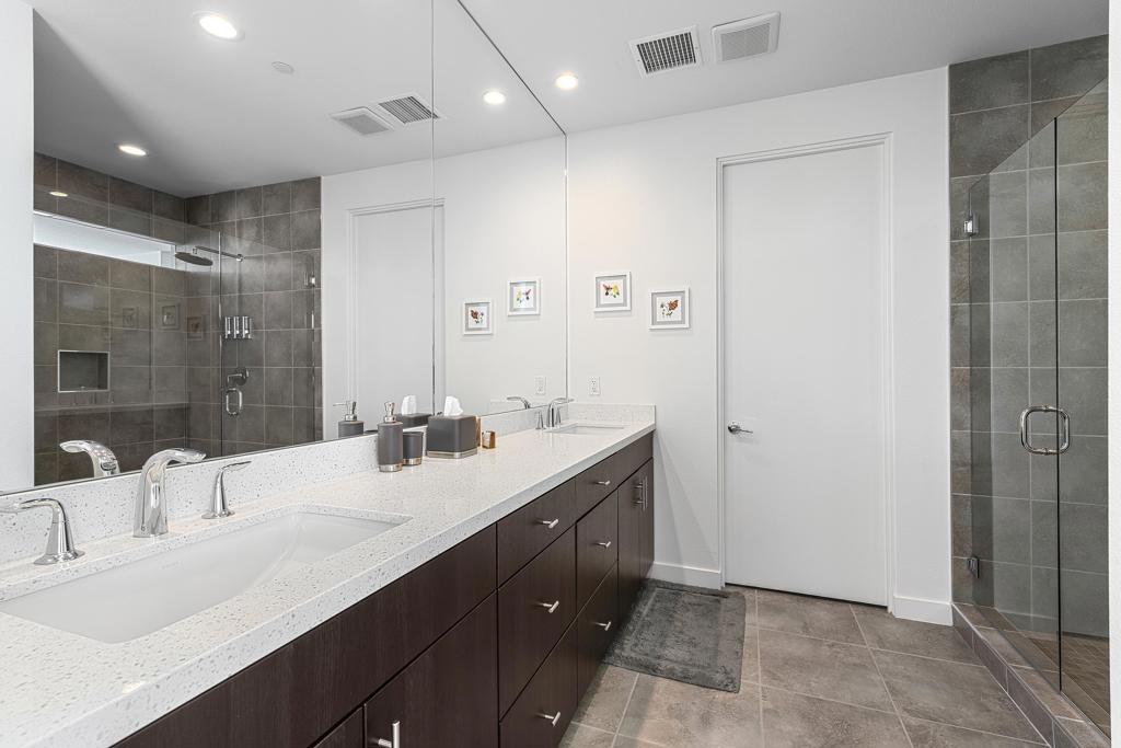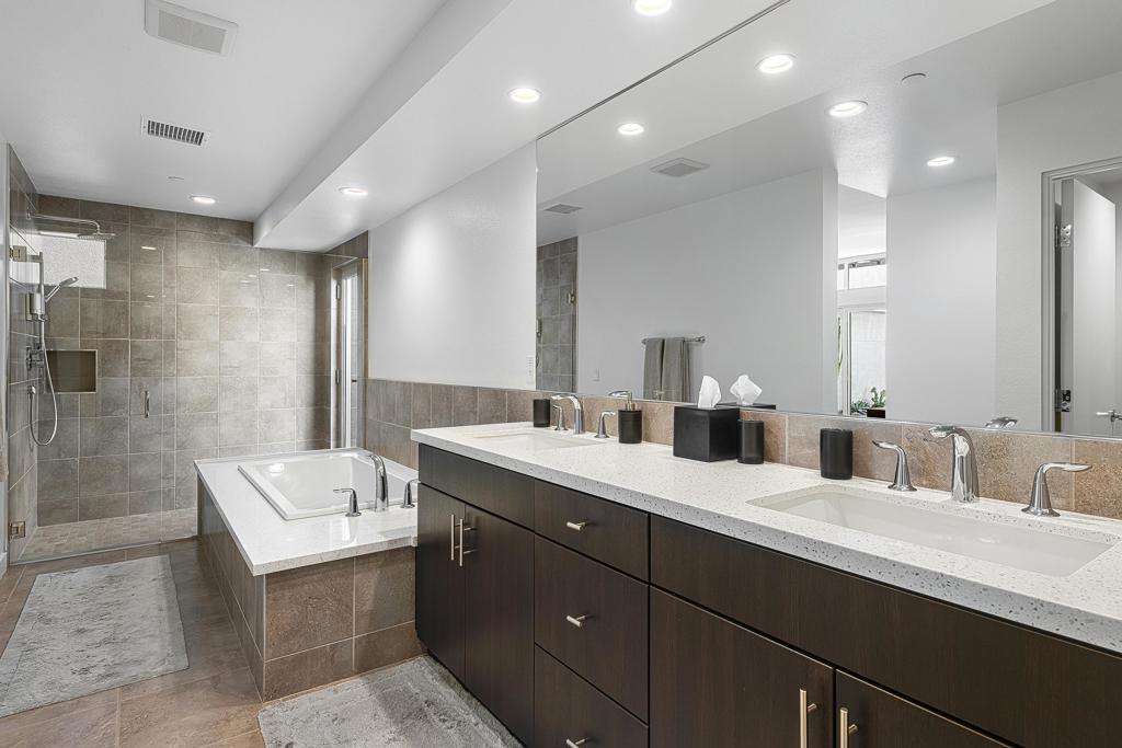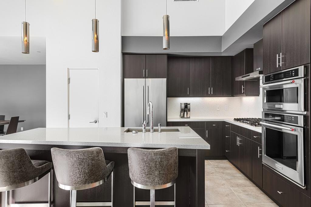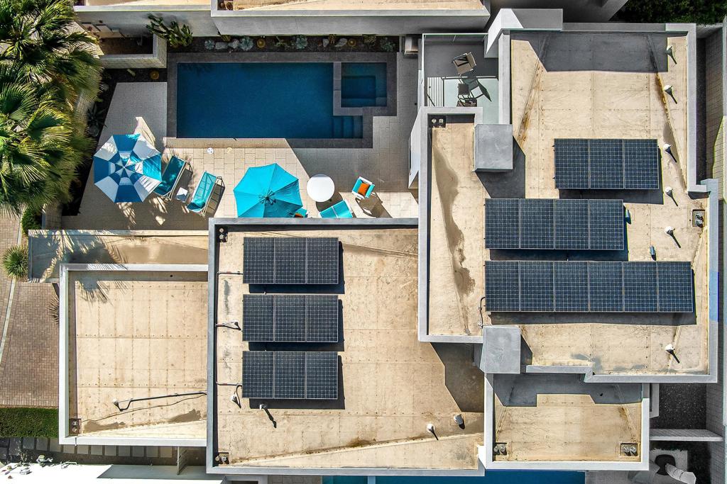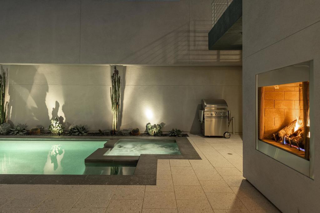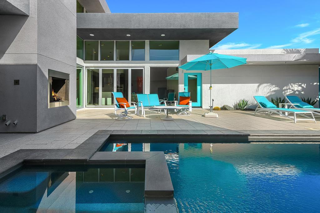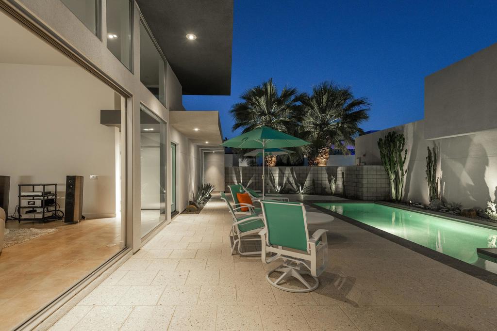 The perfect blend of indoor/outdoor living in this modern home located in the heart of downtown Palm Springs! Convenient to restaurants, shops, and all that downtown has to offer. SOL is a gated community of 46 private residences. The home's contemporary design features an open floor plan with expansive walls of glass and collapsing doors, seamlessly merging your entertaining spaces making it ideal for gatherings. Step inside to soaring ceilings and natural light. The kitchen is a standout with its oversized island, bar seating, ample cabinetry, and sleek quartz countertops. The home has two Primary Suites--one on each level--providing excellent separation and privacy. The upstairs loft offers versatile space that can serve as a sitting area, home office, or personal gym. Outside, enjoy your private pool and spa area, complete with a cozy outdoor fireplace for those cooler Palm Springs evenings. Recent upgrades include owned solar panels, dual variable speed Trane heat pumps, an electric car charger, a tankless water heater, pool pavers, Pentair Wi-Fi equipment, a Culligan water softener, remote electric shades, and enhanced landscaping with lighting. Combining luxury, functionality, and modern design.