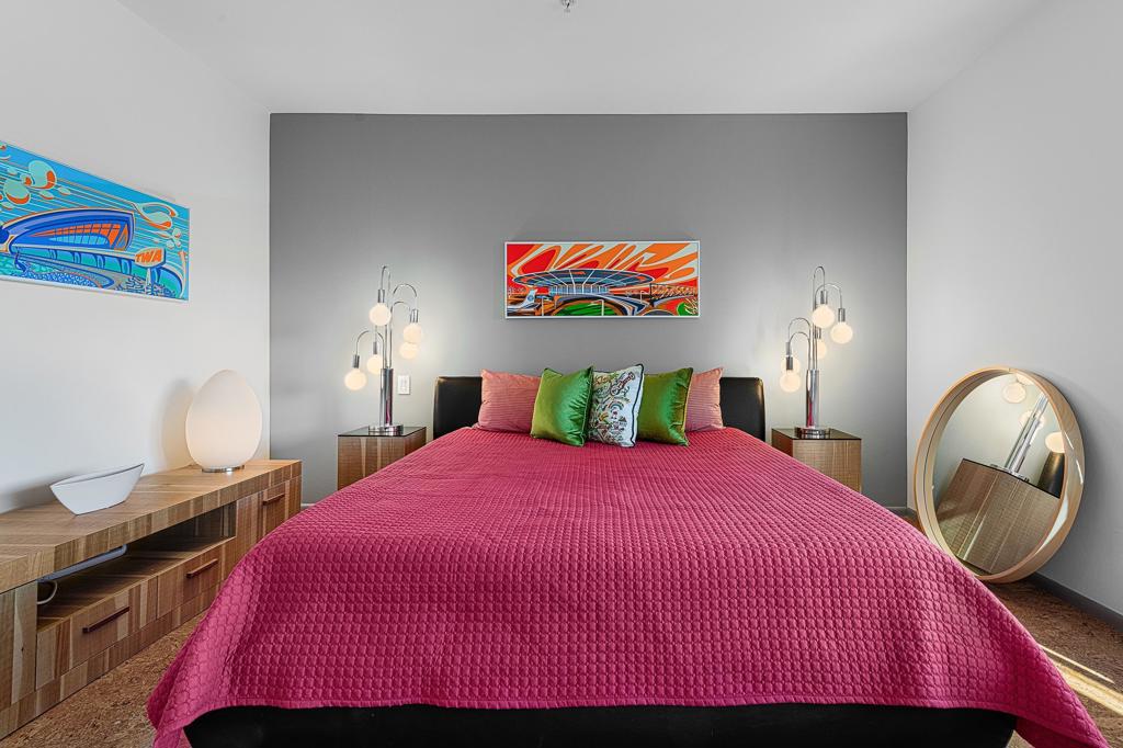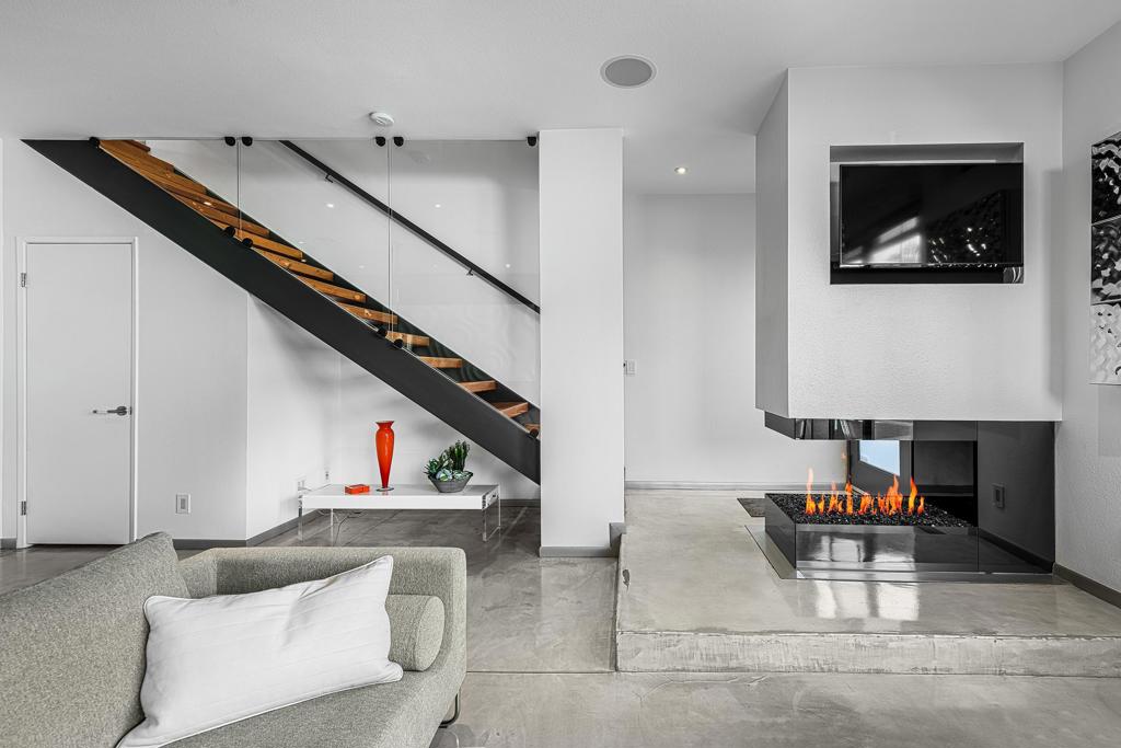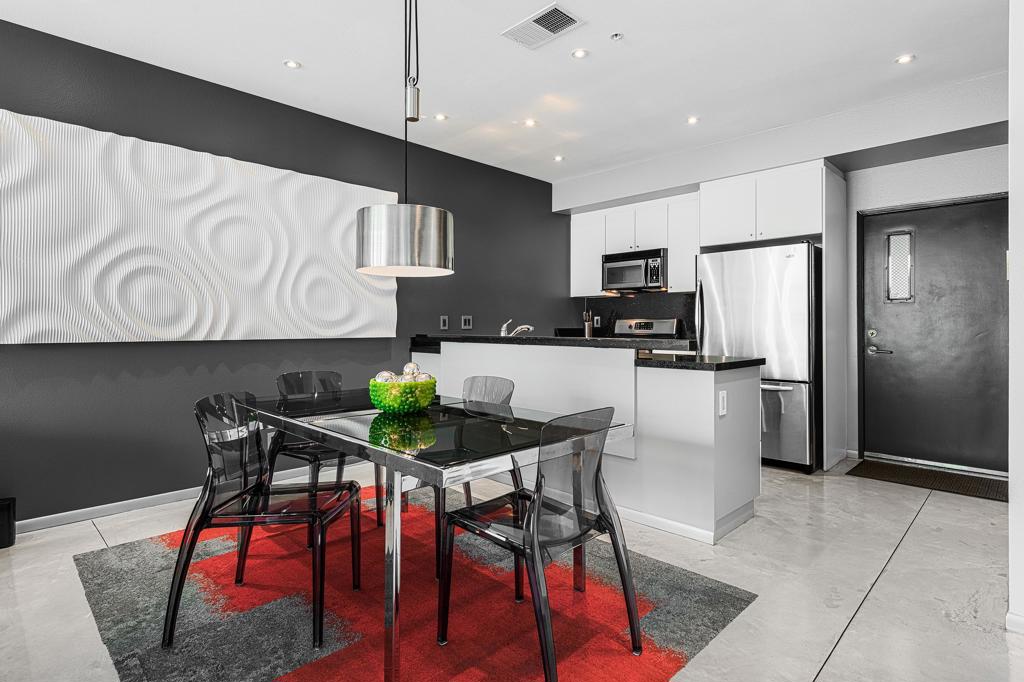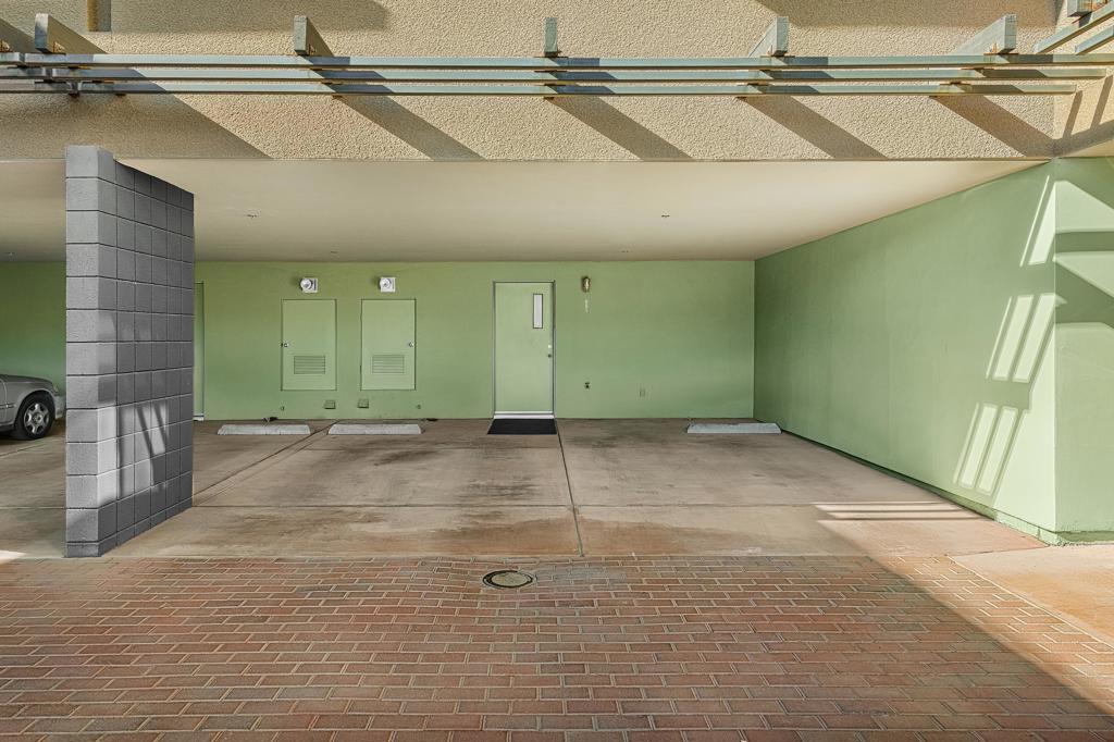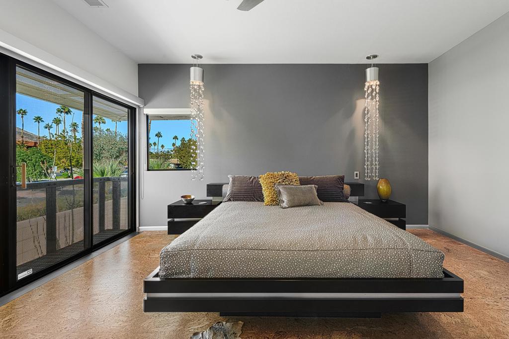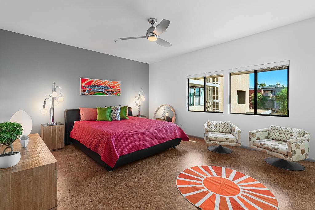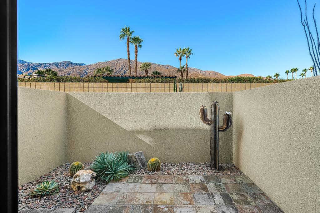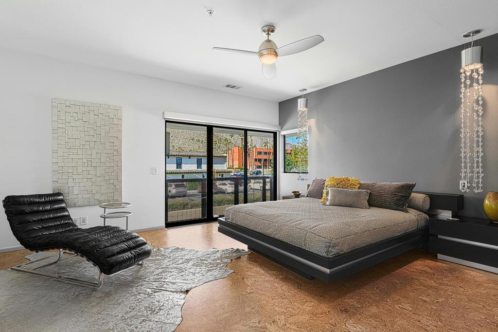 Welcome to designer-inspired townhouse-style living in the modern, gated community of 48@Arenas. This chic 2-bedroom, 2.5-bathroom condo spans 1,596 square feet and offers a perfect blend of urban aesthetic and desert tranquility. Located just a short stroll from the vibrant heart of Downtown Palm Springs, you'll have easy access to dining, retail, the Arenas District, Agua Caliente Casino, and the new Spa and Museum.Step inside to discover a splendid interior design featuring a spacious layout with high ceilings, polished concrete floors, a stylish fireplace, and an open-concept living, dining, and kitchen area. The private patio provides an ideal setting for entertaining or enjoying a quiet moment outdoors. The modern kitchen boasts granite counters and stainless steel appliances, complemented by a convenient stackable in-unit washer/dryer.Upstairs, you'll find two expansive primary suites, each with cork flooring, an abundant closet space, and its own en-suite bath. The primary bedroom features sliders and wrap-around windows that open to a balcony with incredible mountain views.This unit includes a dedicated covered parking space, and the community offers four pools and spas for your enjoyment. With fee-simple land and no lease payment, HOA dues cover earthquake insurance, water, and trash. Furnishings available outside of escrow.