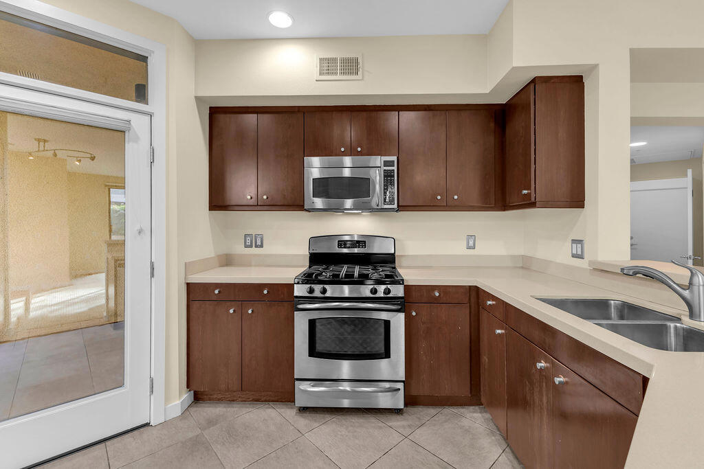 Stylish Condo in Biltmore Colony - South Palm Springs Located in the highly desirable gated community of Biltmore Colony in South Palm Springs, this beautifully refreshed 2-bedroom, 2-bath single-level condo offers desert living with modern style and comfort throughout.Designed for effortless indoor-outdoor living, the open-concept layout flows to a spacious private patio--perfect for entertaining, relaxing, or enjoying Palm Springs' iconic desert lifestyle. The kitchen features stainless steel appliances, a gas range, and a breakfast bar that opens to the living and dining areas, creating a seamless and inviting space.The generous primary suite includes a large walk-in closet and an en-suite bath with a stunning modern tiled shower and dual vanity. The well-appointed guest bedroom also offers a spacious closet and direct access to the second bathroom, ideal for guests or flexible use.Additional highlights include a built-in desk area, an in-unit laundry room, and a two-car tandem garage with ample storage space.Residents enjoy resort-style amenities including pools, spas, and a fitness center. Ideally located near downtown Palm Springs, the ACE Hotel, Koffi, shopping, dining, and hiking trails, this home is perfectly suited as a full-time residence, seasonal retreat, or investment opportunity.